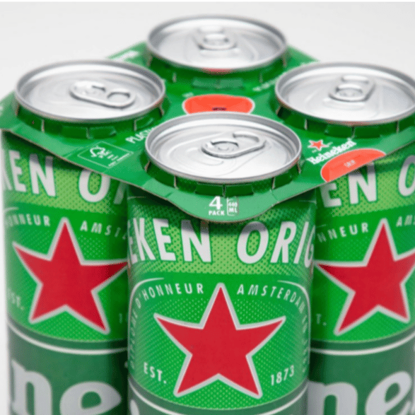Heineken UK introduce en sus latas un embalaje más sostenible al utilizar anillos de cartón en lugar de los típicos anillos plásticos. La marca pretende poner fin a los anillos plásticos en sus latas para fines de 2021.