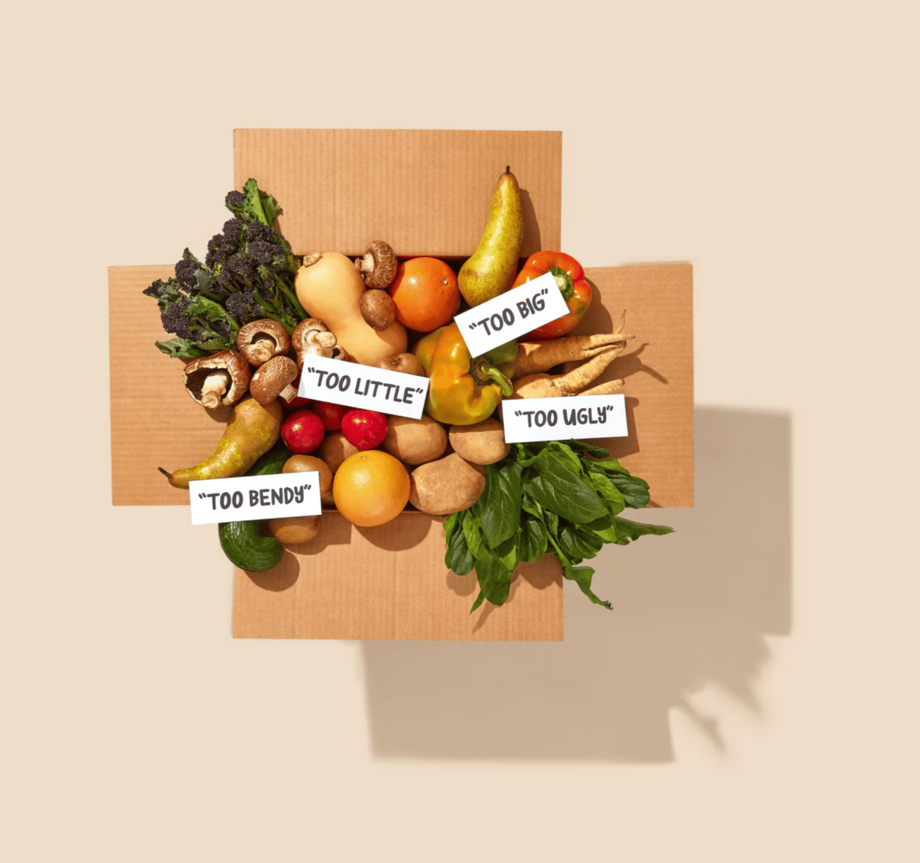 Del campo a tu mesaLa empresa de Reino Unido Oddbox ofrece a los consumidores cajas de frutas y verduras rescatadas directamente de la granja por no cumplir con los estándares de los supermercados, de esta manera eliminan y reducen la cantidad de comida que se tira a la basura.